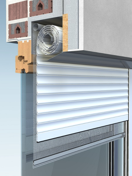 Vakolható kivitel beépített szúnyoghálóval – a Polyhid "kombi" verziója.